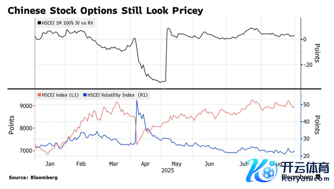 但RV更低,贯通期权订价仍偏高, 现实波动未达预期, 即投资者欣忭为对冲风险支付更高溢价,反馈市集预期畴昔恒生中国指数的波动将放大,隐含了严慎情怀。